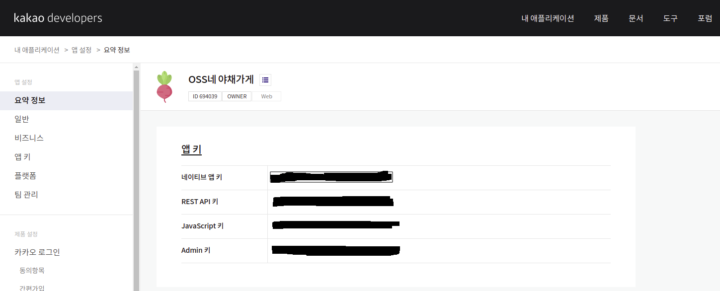 6. kakao developers 사이트로 가서 클라이언트 아이디 받아오기