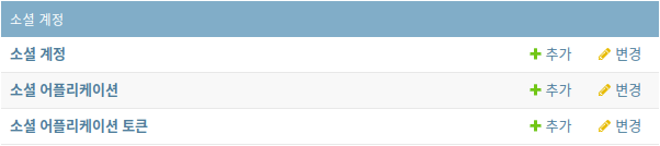 우측 상단의 소셜 어플리케이션 추가 누르기