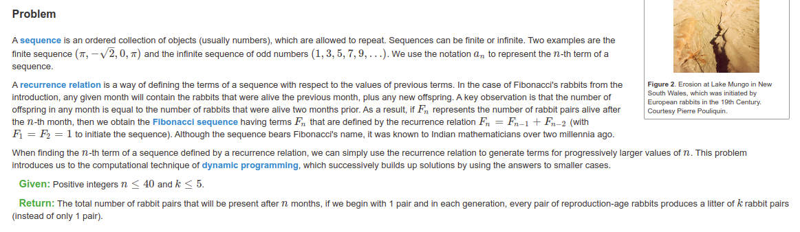 [Python] [ROSALIND] Rabbits and Recurrence Relations 본문